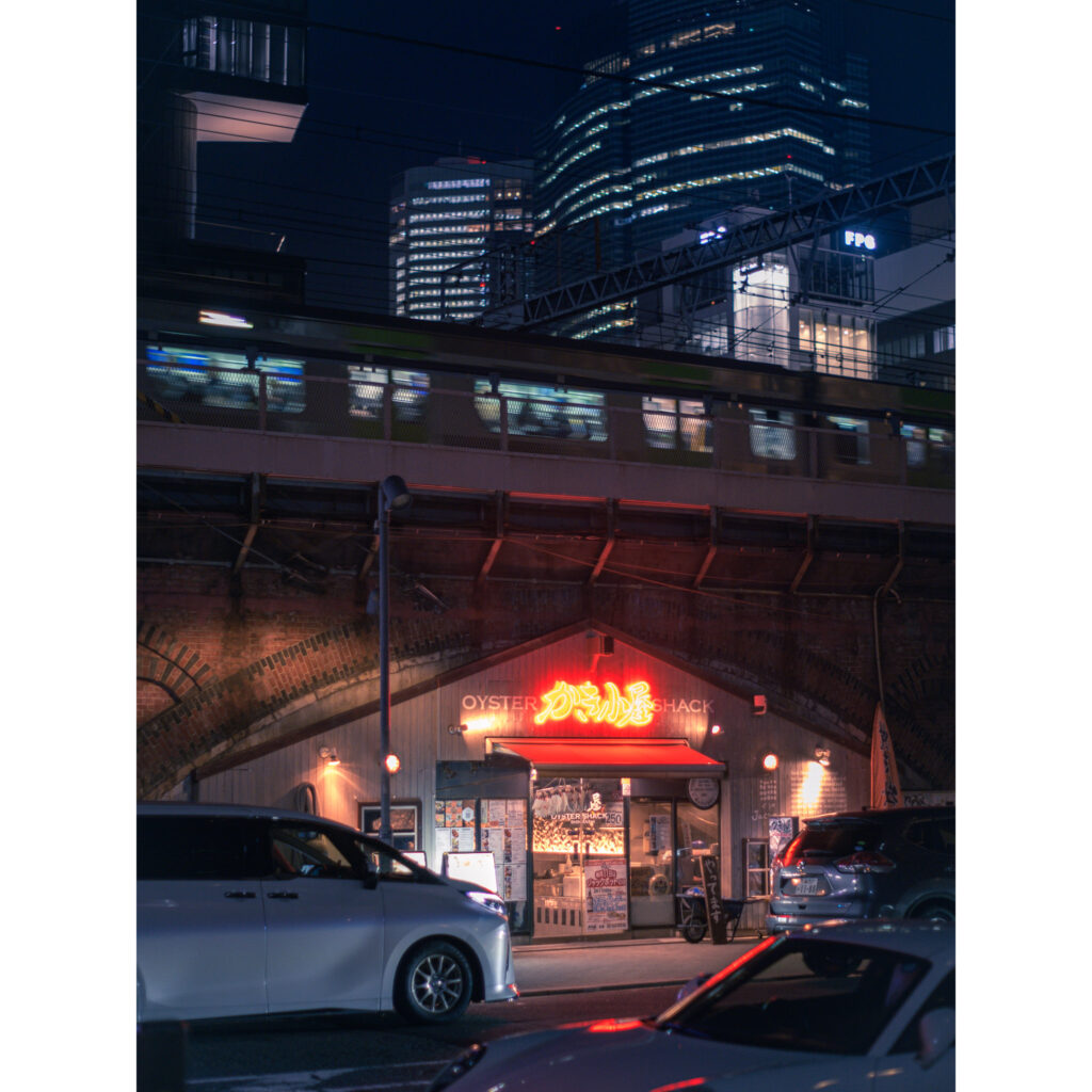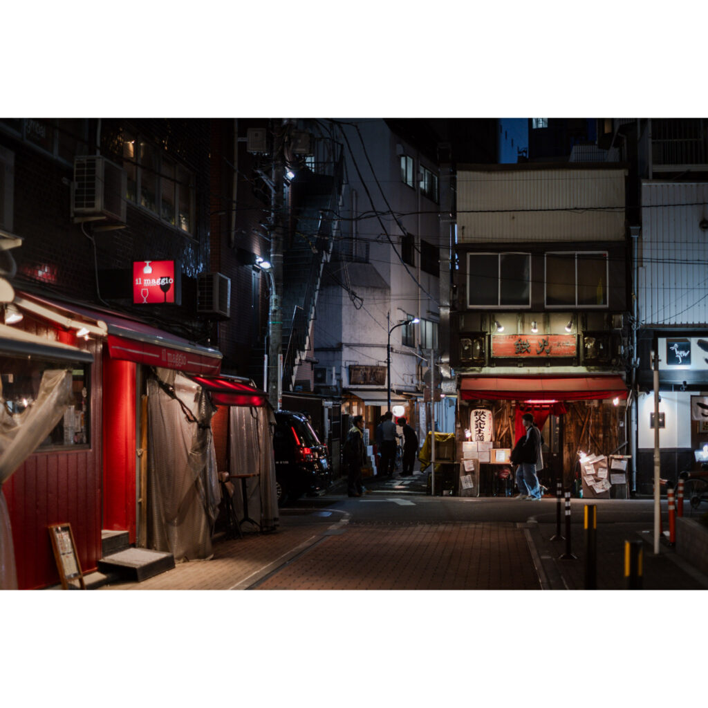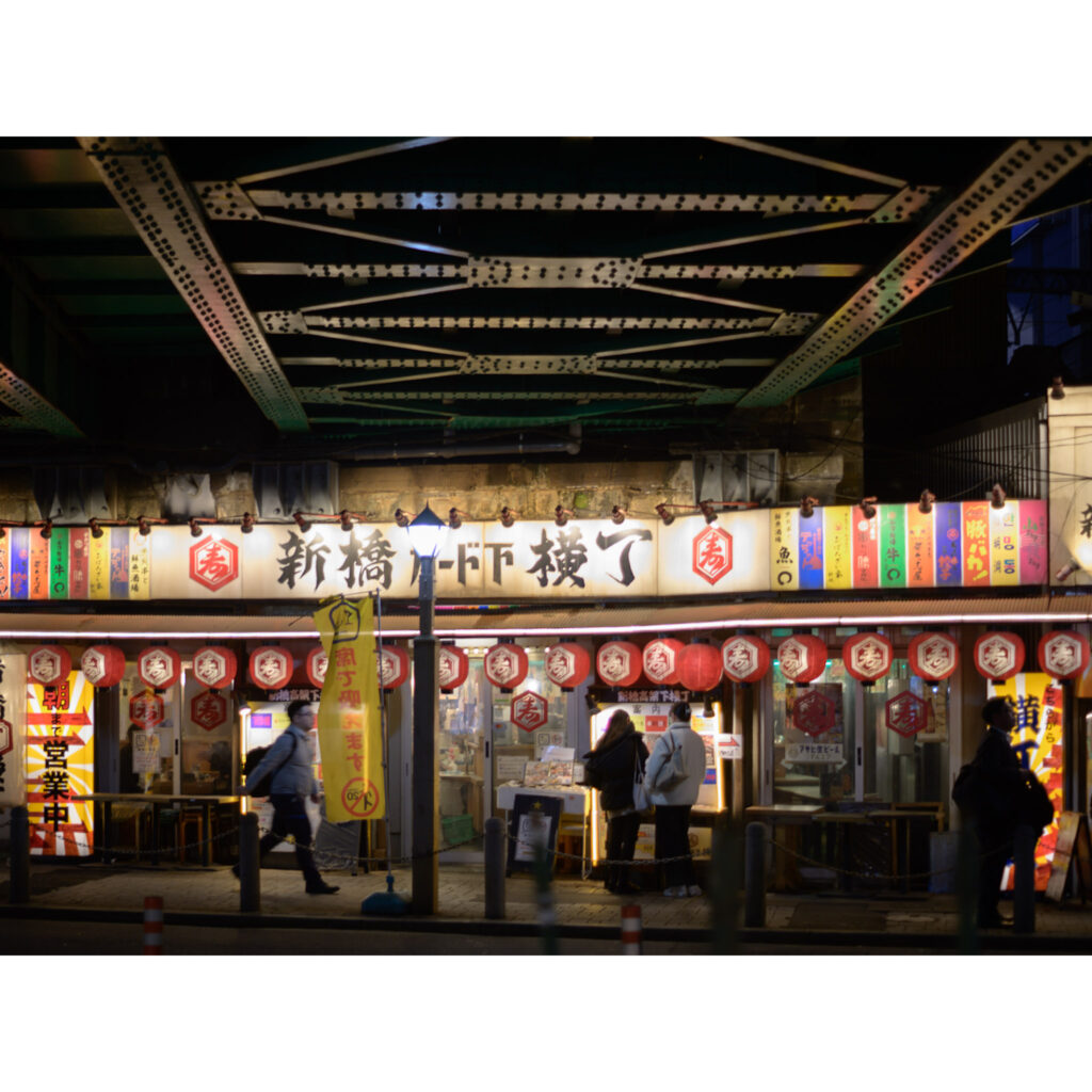 La ballade que j’adore commence à Yurakucho en fin d’après midi… C’est encore sage, on en profite généralement pour faire une escale dans une de ces tavernes à l’allemande qu’on trouve sous les rails de la Yamanote. Quelques bières et quelques saucisses plus tard la ballade commence, toujours le long de la voie de chemin de fer et ira s’achever dans les ruelles de Shimbashi. Un endroit bien moins sage en milieu de soirée. Les néons et les lumières sont désormais ceux des troquets plus ou moins bien fâmés, des prostituées philippines… et des locaux désormais bien imbibés. Tout autre ambiance, et tout autre visage de Tokyo bien moins avouable, mais tout aussi captivant.